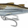 The Crystal Popper 70 is 70mm long and strong and dependable. It weighs 10.5 grams and casts exceptionally well for a small lure. It comes rigged with two trebles and is designed to be retrieved along the surface imitating a fleeing baitfish.