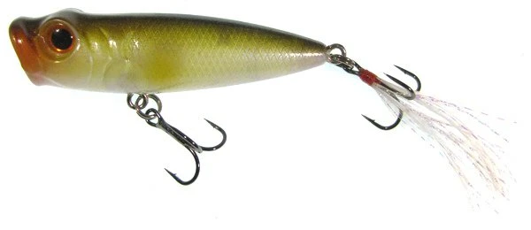 They also have feathered trailing treble hooks that gives the lure more of a flash in the water and in turn makes it more appealing for predatory fish. The lures pops, spits and chugs when retrieved.