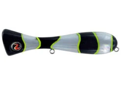 Its heavy weight and aerodynamic shape casts great distances, even in the wind. The large, concave, red-painted mouth pops huge volumes of water, making it one of the noisiest lures on the market.
