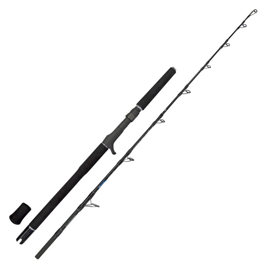 – 2 piece fishing rod: splits at grip (1piece blank / separate grip)