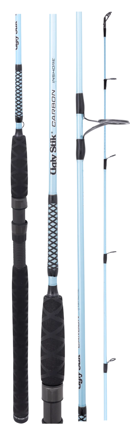 The Ugly Stik® Carbon Inshore Rod is the lightest Ugly Stik® ever. Now 30% lighter. It’s made with a 24-ton graphite construction and a solid graphite tip that makes it sensitive and durable. All the legendary performance of an Ugly Stik® rod, without the weight.