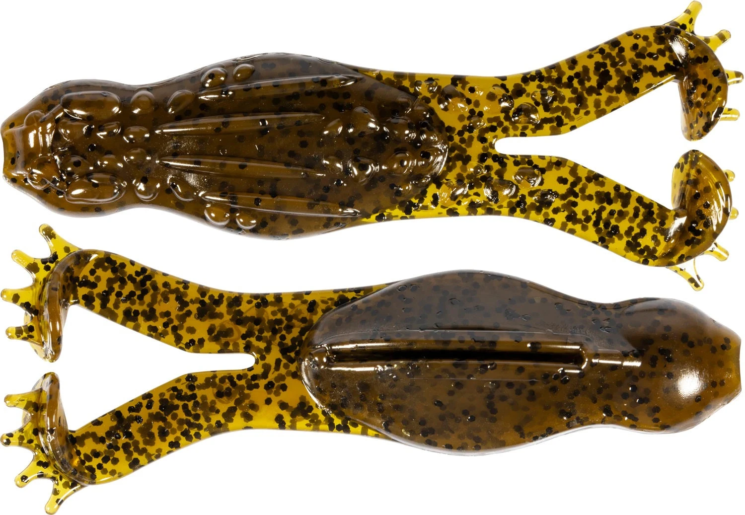 the Goat ToadZ is finally here and ready for serious topwater bass kicking action. Taking the kicking, gurgling, and sloshing tails of the best-selling Goat series, the Goat ToadZ employs a wider, v-shaped frog-shaped body to help it ride high in the water and crawl over floating cover with ease. The flanged kicking Goat paddle tails feature finger-like appendages for added commotion and bubbling effect, certifying the Goat ToadZ as a superb option for rigging weedless with an EWG hook or on the back of a buzzbait.